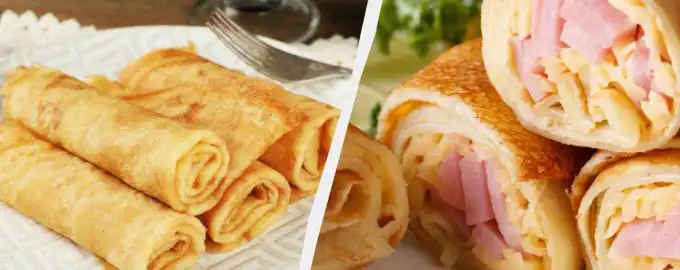 Questi pancake sono così deliziosi che questa ricetta diventerà sicuramente la vostra preferita. Pancake con prosciutto e formaggio / collage My, foto depositphotos.